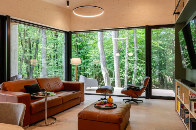 A több mint 130 négyzetméteres villa CLT technológiával, tömörfa felhasználásával készült. A letisztult, modern stílus szélesebb célközönséget ér el, mint a hagyományos gerendaházak vagy rusztikus faházak. Az épületet prémium anyagok és egyedi dizájn jellemzik, a belső terek harmóniáját gondosan válogatott dizájner bútorok és tárgyak biztosítják. A skandináv ihletésű, nagy belmagasságú nappali és étkező, valamint az óriási üvegfelületek tágas érzetet keltenek. Ezen felül a házban helyet kapott egy jól felszerelt konyha, három hálószoba, két fürdőszoba és egy elektromos finn szauna. A fedett terasz egyik része étkezésre is alkalmas, és egy elektromos fürdődézsa teszi teljessé a kikapcsolódást.