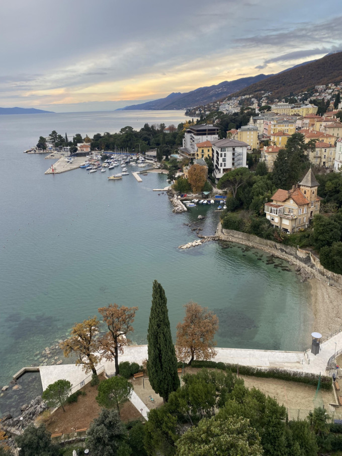 Az ötcsillagos szálloda közvetlenül a strand és a híres Lungomare – a 12 kilométeren át az Adria hullámait követő sétány – fölött terül el. A sétányon barangolva időről időre magyar nevekbe botlunk, hiszen az Osztrák–Magyar Monarchia idején Opatija a régió egyik legkedveltebb üdülőhelye volt. Magyar arisztokraták, művészek és ismert közéleti személyiségek fordultak meg itt, sokan hosszabb időre is otthonuknak választották a várost.