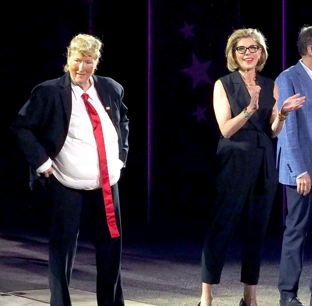 Donald Trump bőrébe bújt Meryl Streep a keddi NYC Theatre Gala nevű eseményen. A színésznő, akinek sokoldalúságán már meg se lepődünk, a Csókolj meg, Katám! című musicalből adott elő egy dalt Christine Baranski (A férjem védelmében) oldalán, aki pedig Hillary Clinton szerepében énekel. Az eseményről egyelőre egy mobillal készült videó áll rendelkezésünkre: